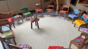 We celebrate a Mid-Winter festival/Christmas during the last week before the Christmas holidays. All four candles burn in the advent wreath, the children attend the Christmas play, which is performed by the teachers. The teachers also perform the big Christmas play for parents and other interested parties.